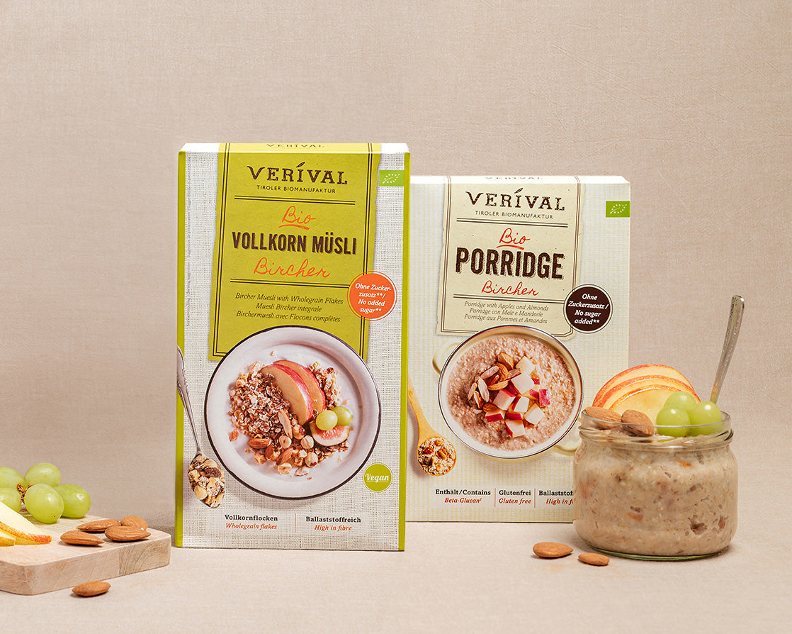 Verival è sinonimo di altissima qualità biologica, sostenibilità e dei migliori ingredienti provenienti da coltivazioni biologiche controllate. Il muesli e il porridge Bircher di Verival offrono ricette tradizionali con un tocco moderno e supportano una dieta sana.