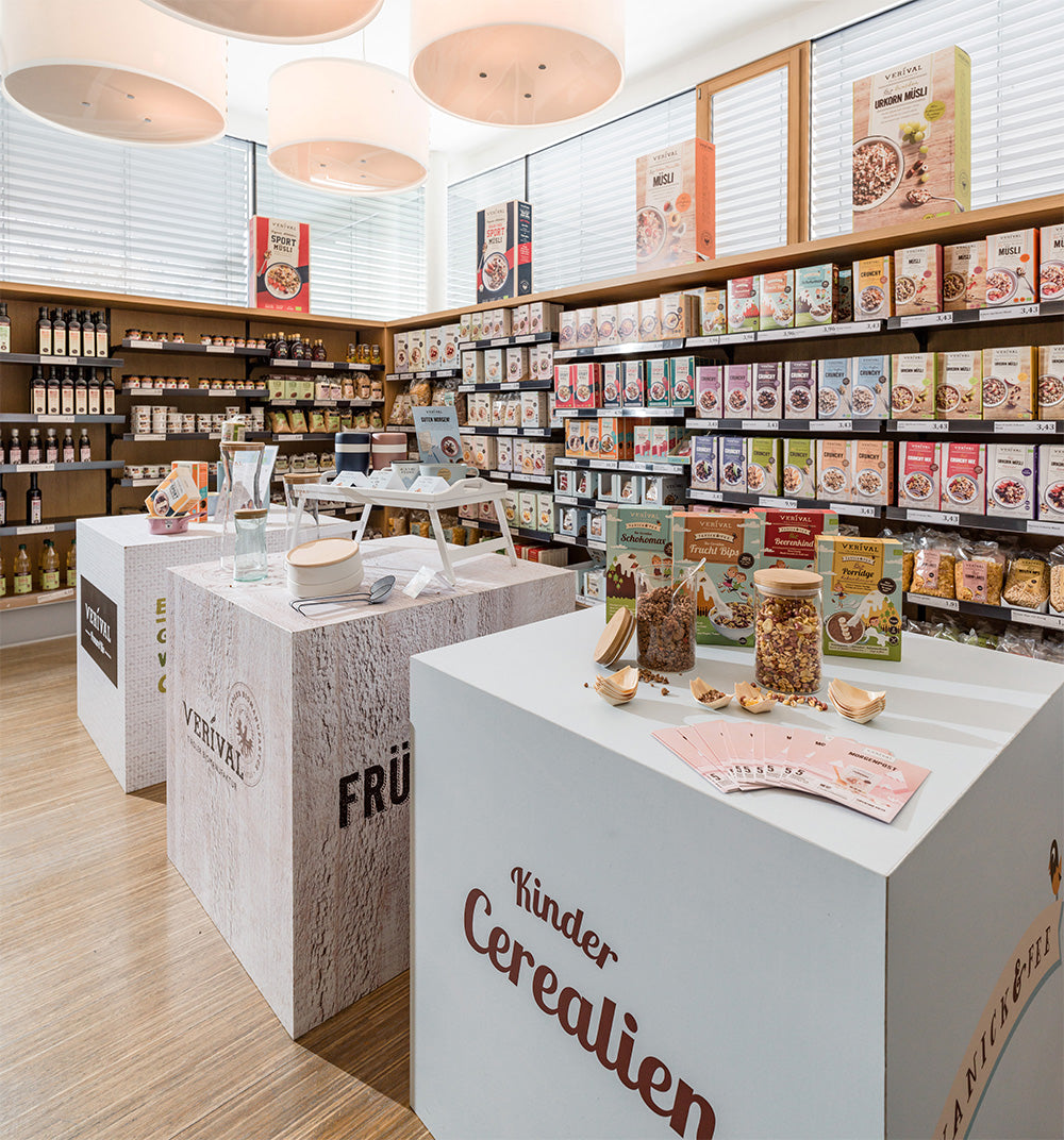 Vieni a trovarci nel nostro negozio direttamente nell'edificio di produzione a Langkampfen (Tirolo) e scopri l'intera gamma di colazioni biologiche Verival. Il nostro staff sarà lieto di consigliarti.