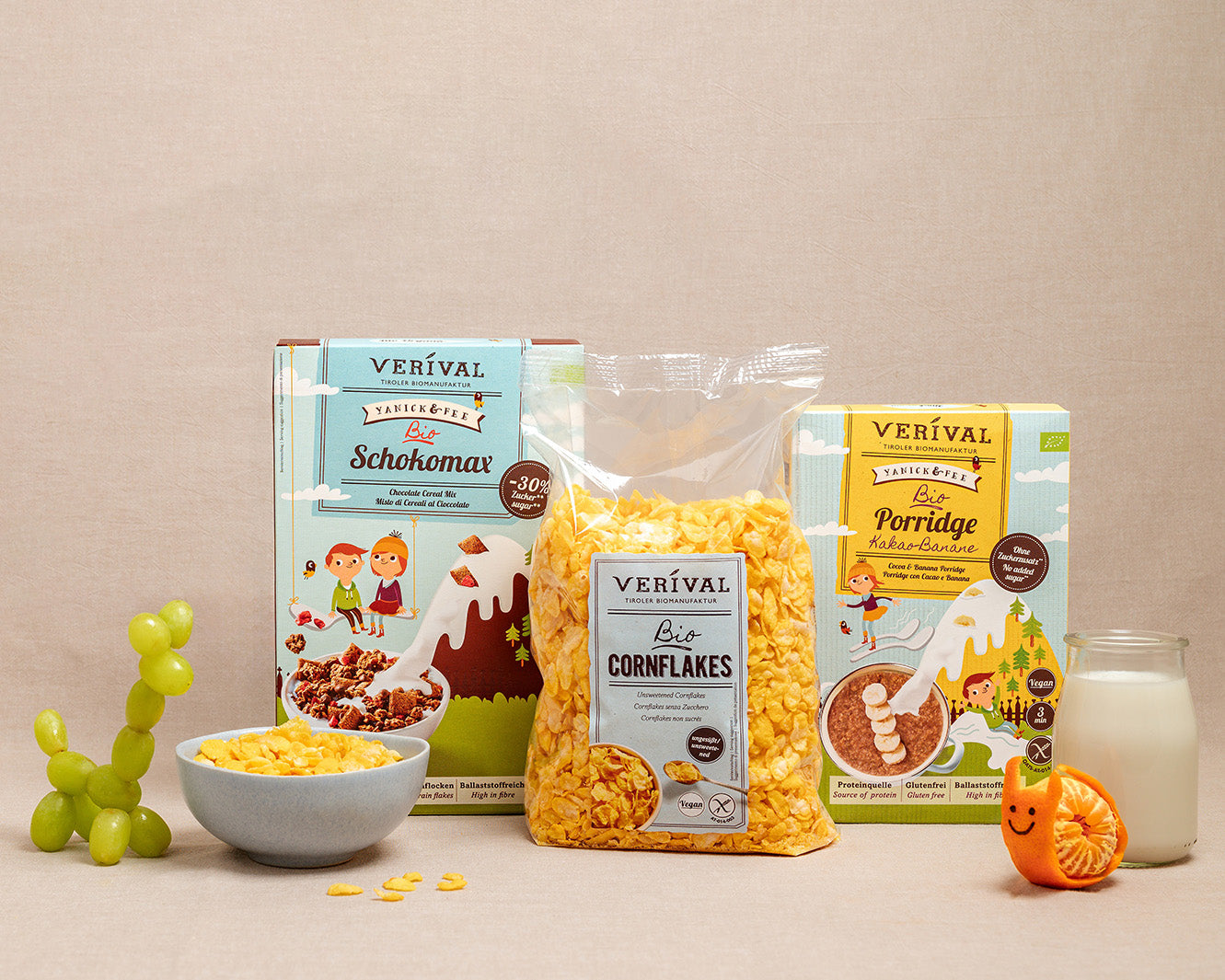 Il porridge Verival per bambini, il muesli per bambini o i cornflakes per bambini sono l'inizio perfetto della giornata!
