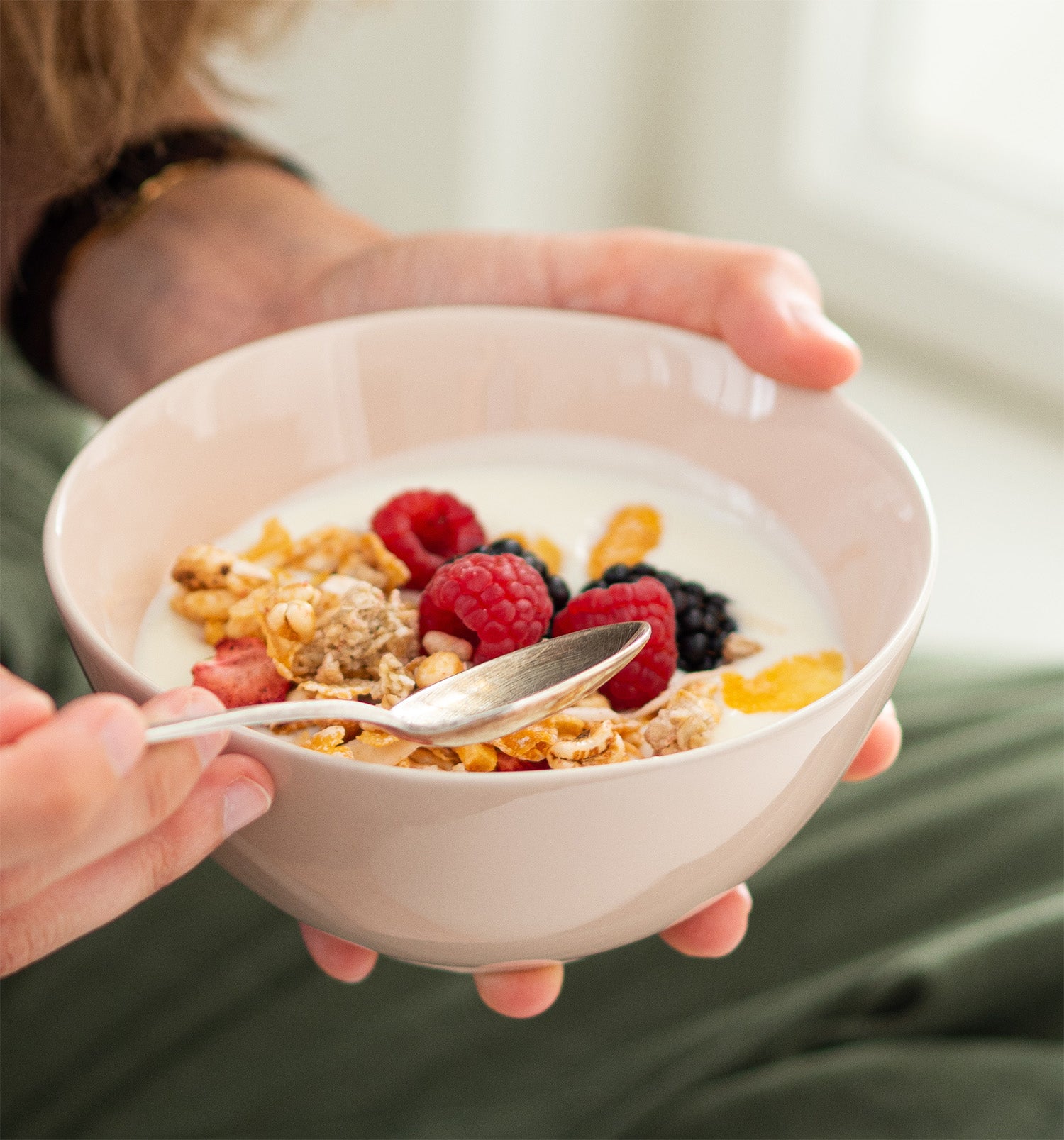Utilizziamo l'avena per la maggior parte dei nostri mix di granola. Questo cereale è considerato dai nutrizionisti particolarmente prezioso per il suo contenuto di fibre pari al 10%, la qualità dei carboidrati, la composizione proteica, gli acidi grassi insaturi e le vitamine e i minerali che contiene. È stato inoltre scientificamente provato che il beta glucano contenuto nell'avena ha un effetto positivo sulla salute del cuore.(1) Alcuni dei nostri mix di granola Verival sono realizzati non solo con avena, ma anche con orzo, farro e grano. Cosa hanno in comune tutte le varietà? Sono realizzati con fiocchi integrali. La granola croccante come colazione energetica L'integrale è un cereale in cui tutte le parti del chicco vengono lavorate. Ciò significa che i nutrienti come le fibre, le vitamine, gli oli e i minerali sono conservati in modo ottimale nella granola. I fiocchi aiutano a mantenere costanti i livelli di zucchero nel sangue, provocano una sensazione di sazietà di lunga durata e favoriscono la digestione. Le riserve di energia svuotate durante la notte possono quindi essere reintegrate in modo ottimale con i cereali integrali.