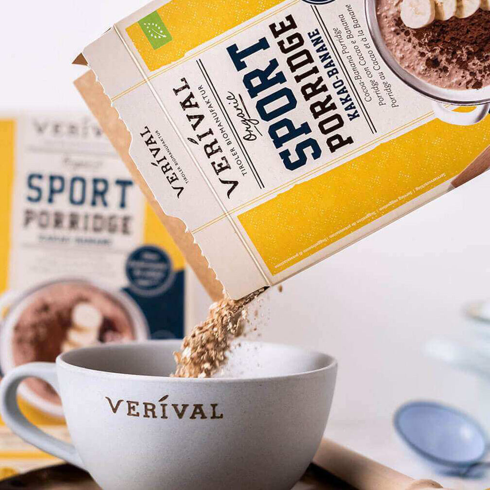 Perfeziona il porridge finito a tuo piacimento con i tuoi ingredienti preferiti o con le deliziose guarnizioni di Verival. Un inizio di giornata veloce e salutare.