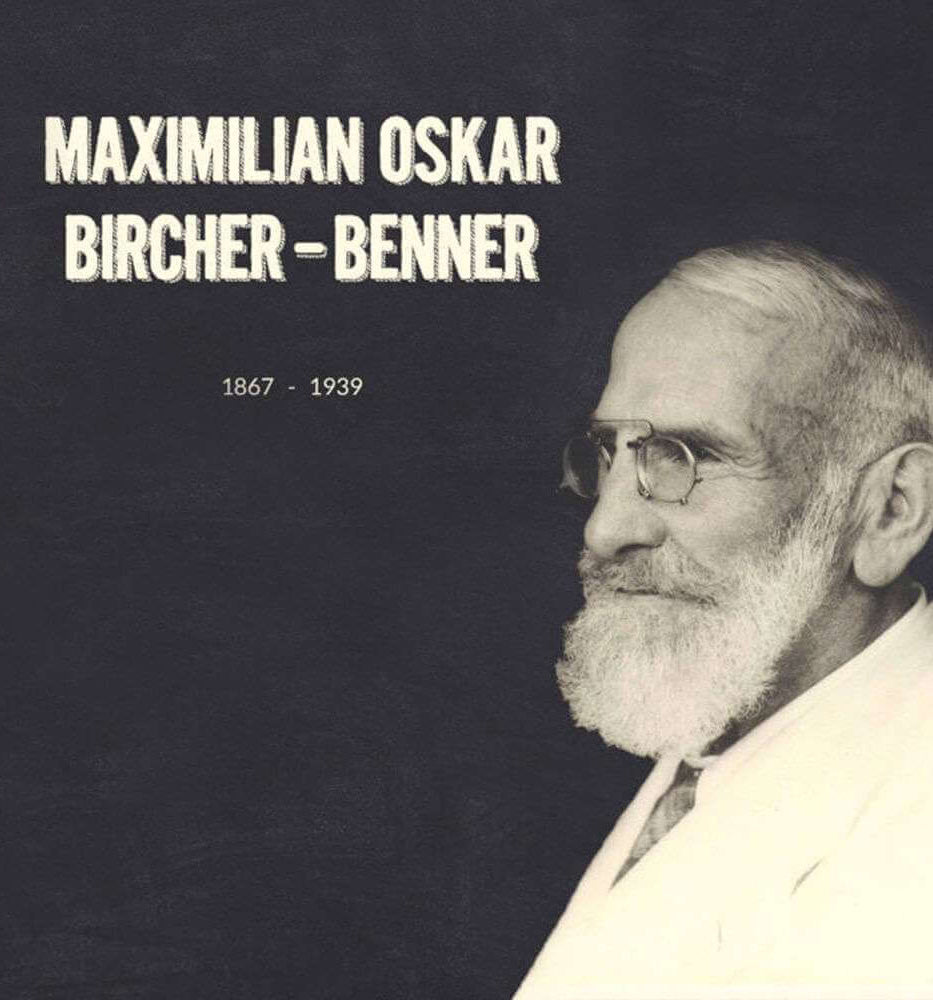 L'inventore del muesli Bircher fu il medico svizzero Maximilian Oskar Bircher-Benner. Scoprì il muesli, composto da avena, mele, noci, succo di limone e latte condensato, durante una visita a una casara sulle Alpi. Bircher-Benner lo raffinò e lo servì ai suoi pazienti come dieta salutare a base di mele. Fu così che nacque il muesli di Bircher, oggi conosciuto in tutto il mondo.